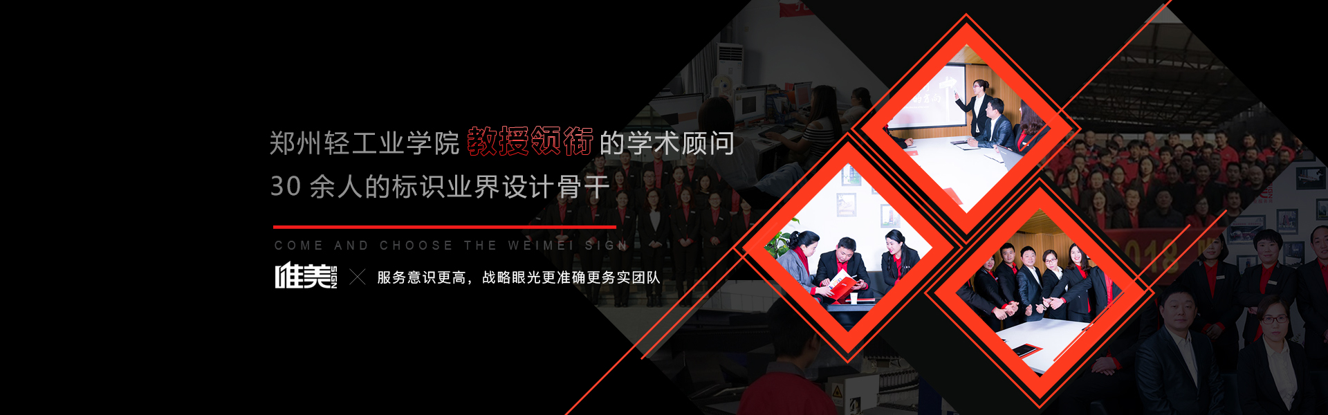 2024-3-21鄭州唯美標識設(shè)計制作公司擁有21000平方現(xiàn)代化生產(chǎn)車間、多臺先進設(shè)備、100多名技工團隊、12位資深設(shè)計師團隊,嚴遵19道制作工序和6S管理體系,成功服務(wù)2800多個標識項目,3...